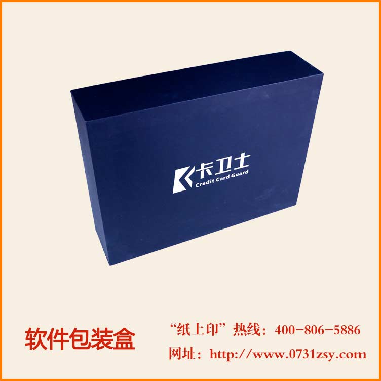 卡卫士信用卡管家包装盒是长沙软件包装盒制作毅丰包装专业生产制作的,此款包装盒封面设计采用蓝色作为背景色,在包装盒封面只放了品牌名,而采用了高档材质和工艺,并有利于提升包装盒档次,做出的软件包装盒大货很精致,因此毅丰包装厂印刷制作的包装盒品质令客户很满意,达到了推广产品和品牌的目的,