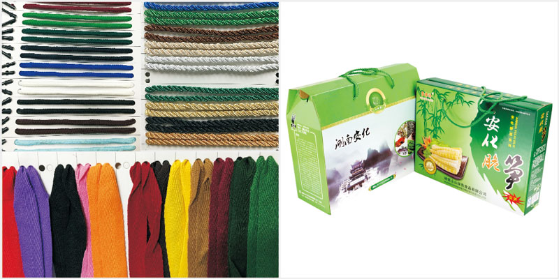 常用的手提绳子有三股扭绳,丙纶PP绳,涤纶绳,人字带等。一般应用于礼品包装盒,手提袋。