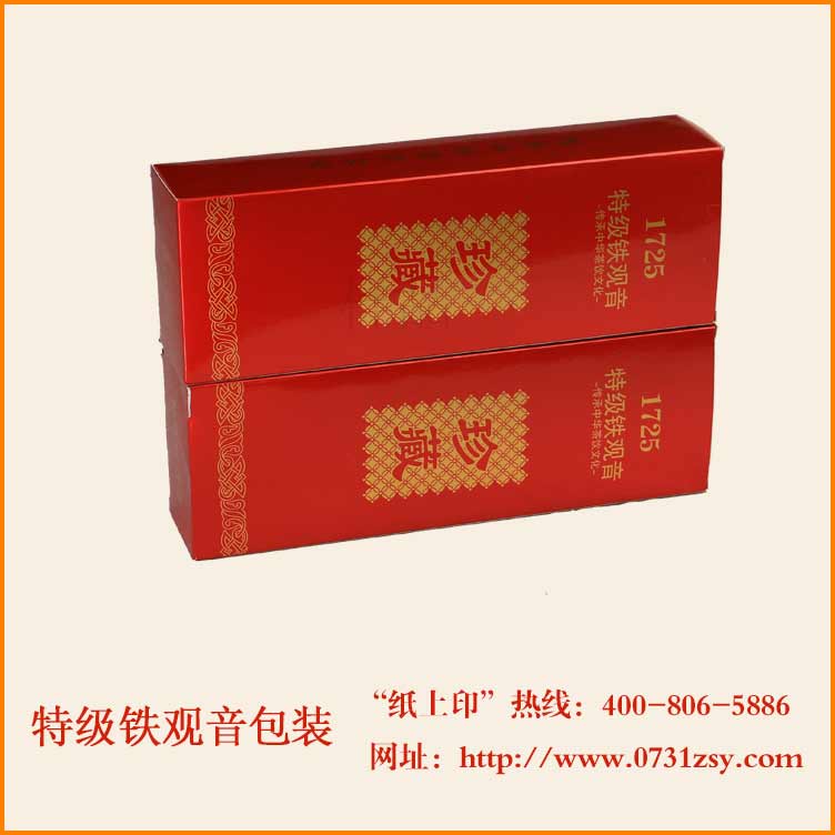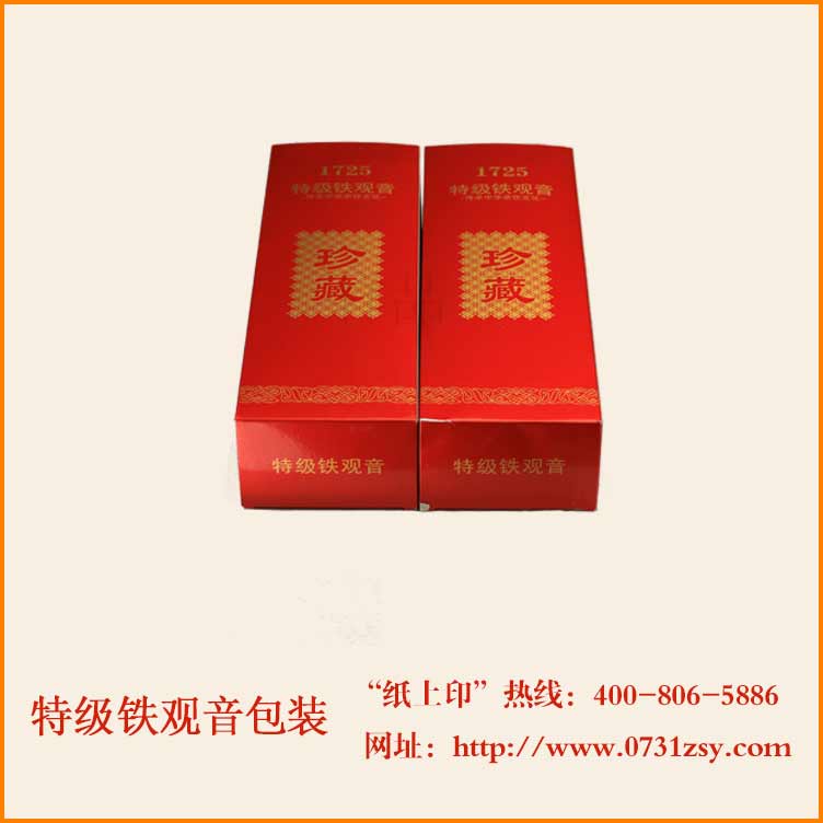 1725特级铁观音白卡盒包装是毅丰包装厂专业印刷制作外包装盒,此款包装盒材质采用白卡纸包装制作,并覆亮膜,外包装盒采用红色及花纹作为背景色,主要是用来衬托主题,以及吸人眼球,更适合作为礼盒来送人,达到推广产品和品牌的作用。