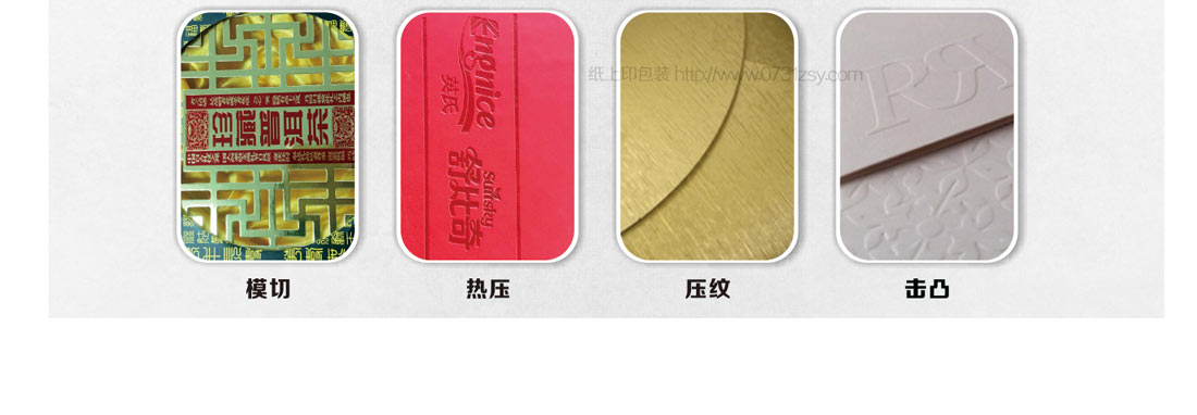 击凸工艺是印刷后工艺中常用的技术之一,从纸张背面施加压力让表面膨起来的工艺俗称“击凸”,目的在于增加整体结构上的层次。 压凹工艺是将凹版和凸版相结合,并把纸夹入,后施加压力使纸凹陷,从而表现文字和图案,具有明显的立体感。