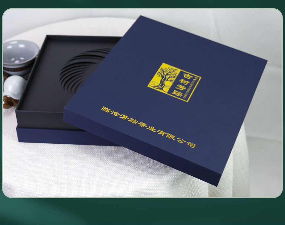 【使用范围】:古树芳踪茶叶盒是一款天地盖盒,采用特种纸裱灰板的印刷材质,外盒烫黄金工艺,此款印刷材质还适用于礼品包装、产品包装盒印刷、茶油包装盒等。