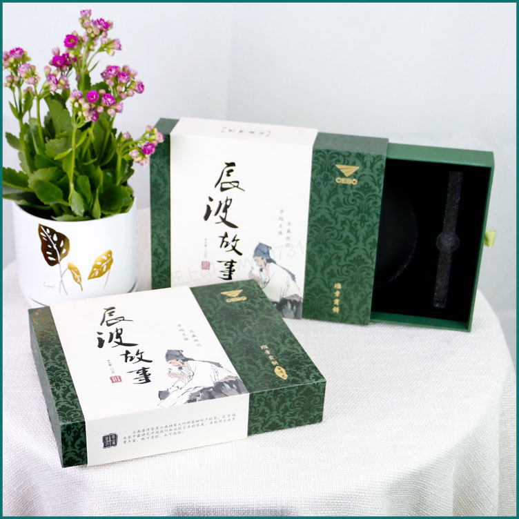 此款普洱茶精品包装礼盒是一款抽屉盒,长沙包装厂毅丰在包装盒的封套和外盒均采用特种纸裱灰板制作,内衬精选珍珠棉裱植绒,根据产品的尺寸开模挖型,美观精致又坚固,起到了固定产品的作用,这款茶叶包装盒礼盒广泛应用于:茶叶包装礼盒定做,食品包装礼盒,茶油包装礼盒等。