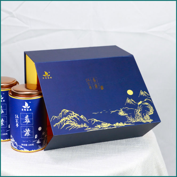 【使用范围】:张家界莓茶包装礼盒是一款书型盒,材质选用铜版纸裱灰板,面纸烫金工艺,印刷材质同样也可用于保健品包装盒、礼品包装盒印刷、山茶油包装盒等。