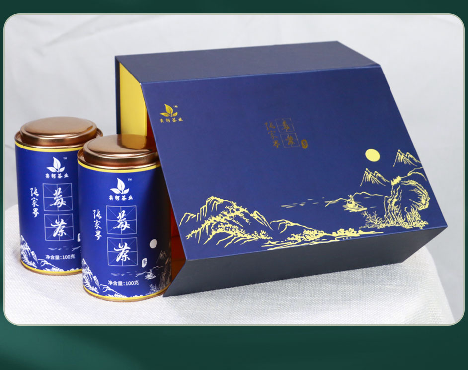 张家界永顺县奕轲茶业有限公司委托长沙包装厂毅丰设计制作此款“张家界莓茶”包装盒,奕轲茶业负责人通过网络搜索引擎联系到长沙包装厂家毅丰,奕轲茶业提供了定制好的茶叶罐希望做出同色系的茶叶外包装,毅丰包装业务对接人员通过两罐茶叶罐给出了包装方案,设计团队对比茶叶罐的颜色最终给出此款包装设计,奕轲茶业对此款张家界莓茶包装礼盒非常满意,并对毅丰包装团队给予高度好评!