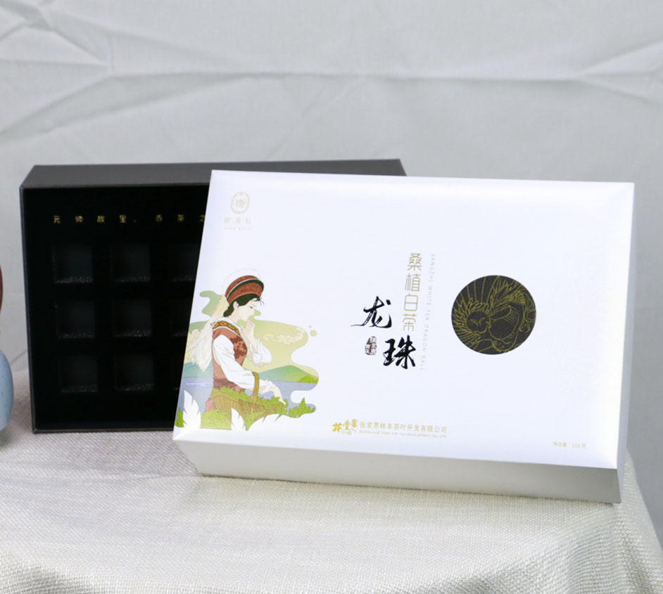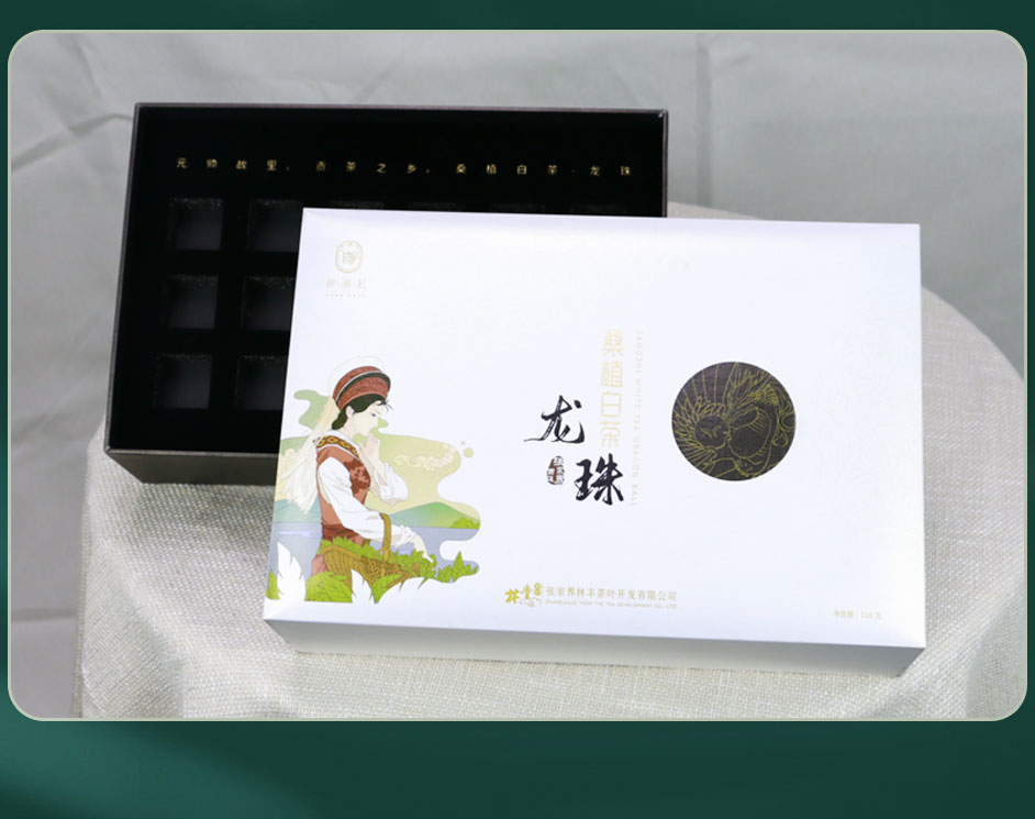 桑植县优越的高海拔高降水量的自然环境,高有机物质含量的独特酸性红土壤,孕育出纯天然优质茶叶。好茶自然要好的茶叶礼盒包装,长沙包装厂家毅丰包装秉着提升客户品牌价值,为客户提供价值远超价格的包装这一包装理念,一直以来深受新老客户信赖,此次出品桑植白茶包装礼盒也得到客户的认可,此款茶叶礼品盒是一款天地盖盒的精装礼盒,外盒采用珠光纸裱灰板制作,内衬是珍珠棉植绒,材质同样也可用于保健品包装盒、礼品包装盒印刷、茶油包装盒等