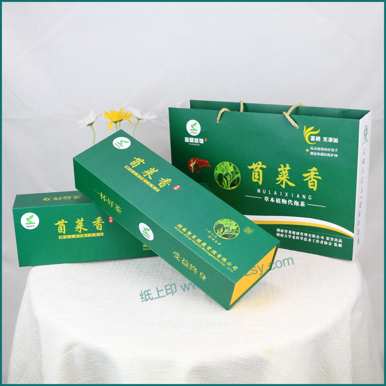 【使用范围】:富硒苜莱香草本植物代泡茶是一款书型盒,选用铜版纸裱灰板,广泛适用于茶叶包装盒,礼品包装盒,医疗保健品包装盒,礼品包装盒,产品包装盒等,茶叶包装礼盒定制厂家毅丰,提供产品设计方案,价格实在,热线:177-6366-7656