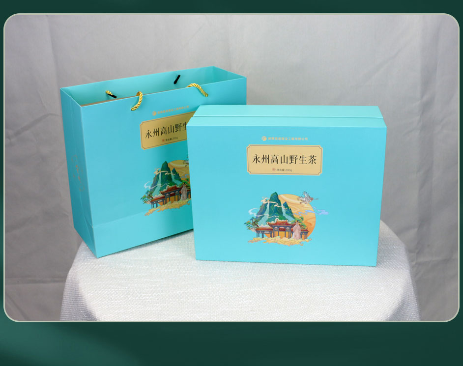 永州高山野生茶包装盒是一款天地盖的盒型,由长沙包装盒厂毅丰包装制作出品,材质选用出色印画专色印刷裱灰板,插画风格展现当地地域及产品特色,其印刷材质同样也可用于保健品包装盒、化妆品包装盒、月饼礼盒、山茶油包装盒等,长沙毅丰包装结合产品定位,提供各种包装礼盒解决方案。