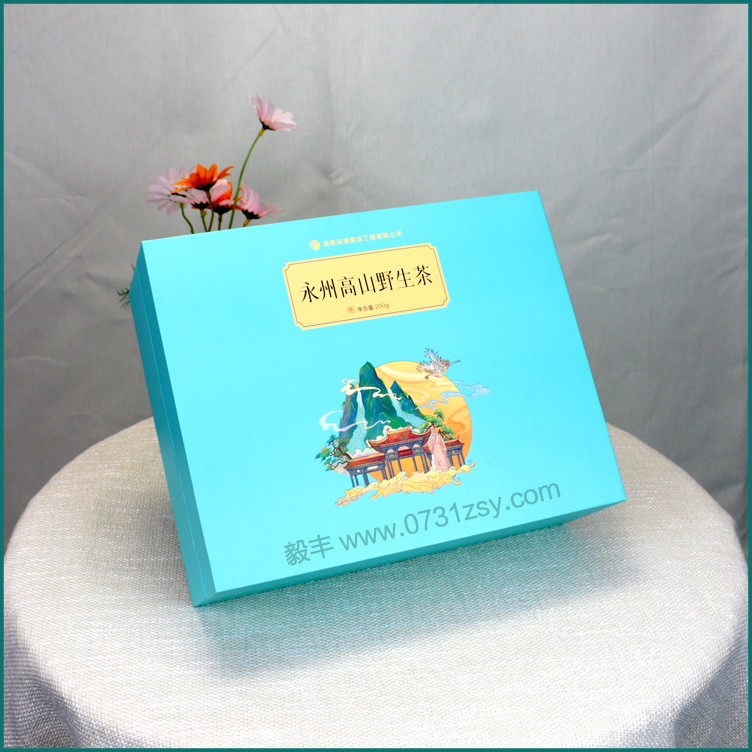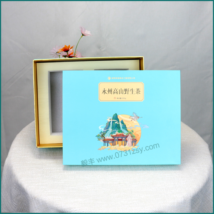 【使用范围】:永州高山野生茶包装盒是一款天地盖的盒型,材质选用特种纸裱灰板,印刷材质同样也可用于保健品包装盒、化妆品包装盒、月饼礼盒、山茶油包装盒等,礼盒包装定做厂家毅丰结合产品定位,提供各种包装礼盒解决方案