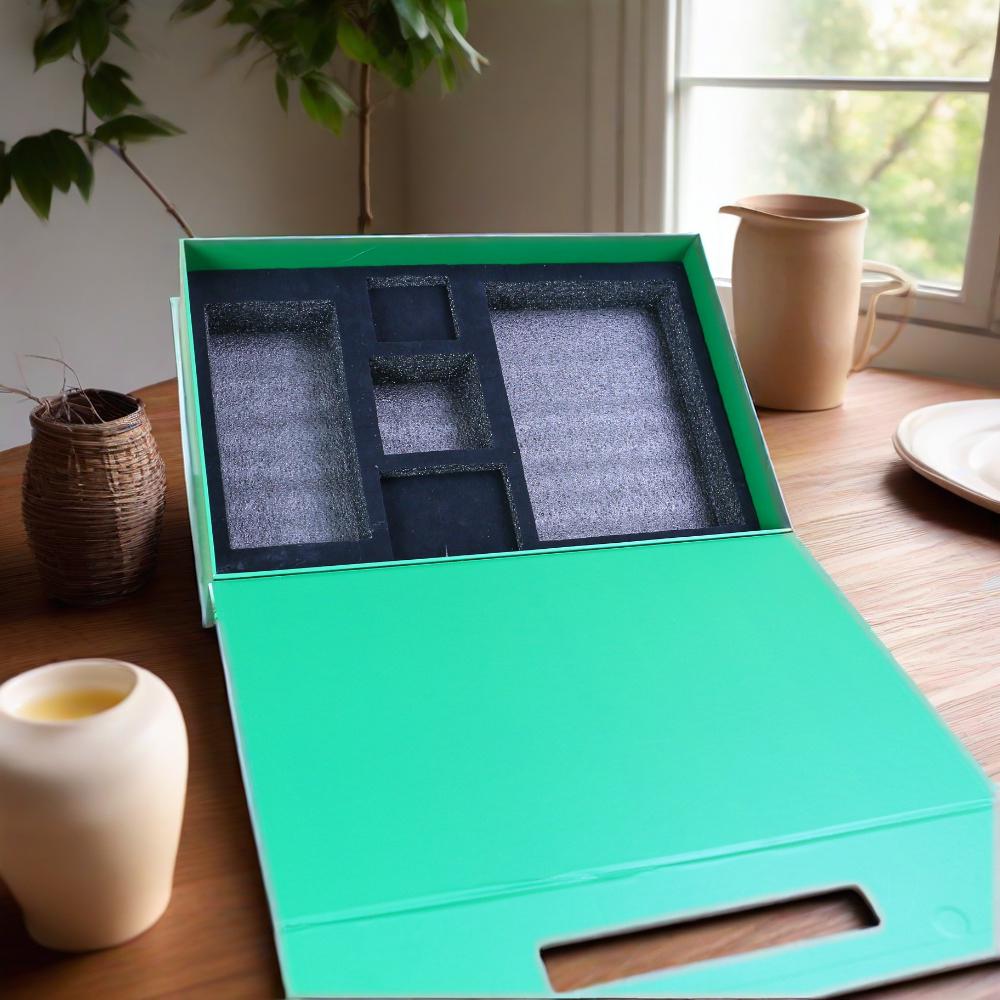 EVA,是新型环保塑料发泡材料,具有良好的缓冲、抗震、隔热、防潮、抗化学腐蚀等优点,且无毒、不吸水。常用于茶油包装,酒包装,芝麻油包装等产品内衬。