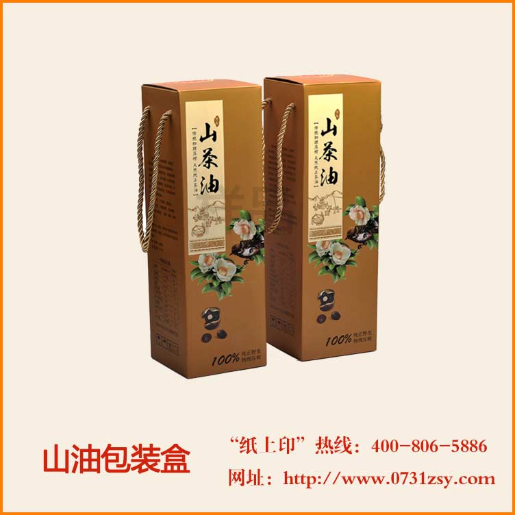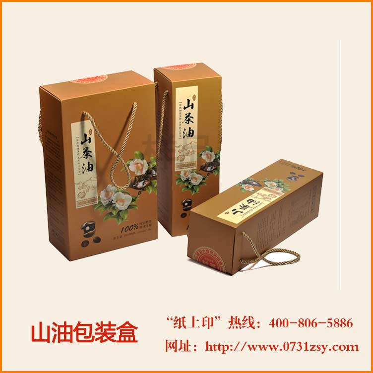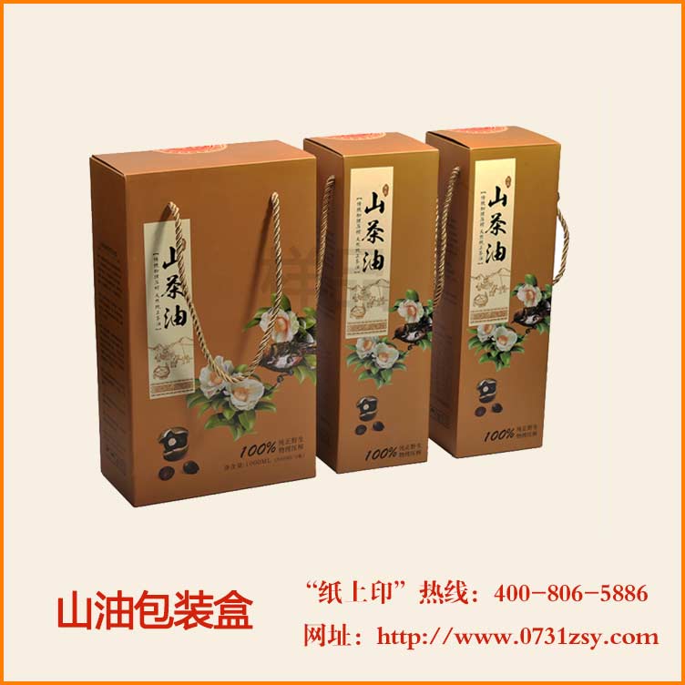 长沙山茶油包装盒毅丰包装厂是一家集山茶油包装盒设计,打样,印刷制作为一体的大型包装纸箱厂,此款山茶油包装盒是瓦楞纸印刷制作而成,手提绳盒,长沙毅丰包装厂主要生产各种精品包装盒、瓦楞包装盒、白卡纸盒、牛皮纸包装盒,其主要应用于农产品、土特产品、化妆品、保健品、礼品、机械产品、茶叶、医疗器械品、电子产品及其它日用制品等行业。