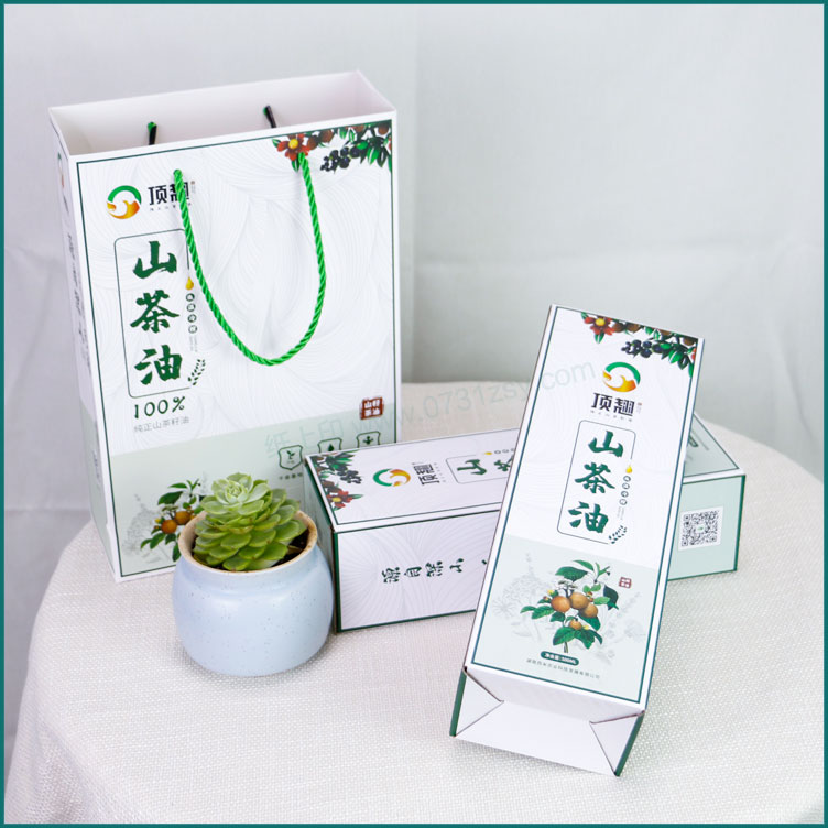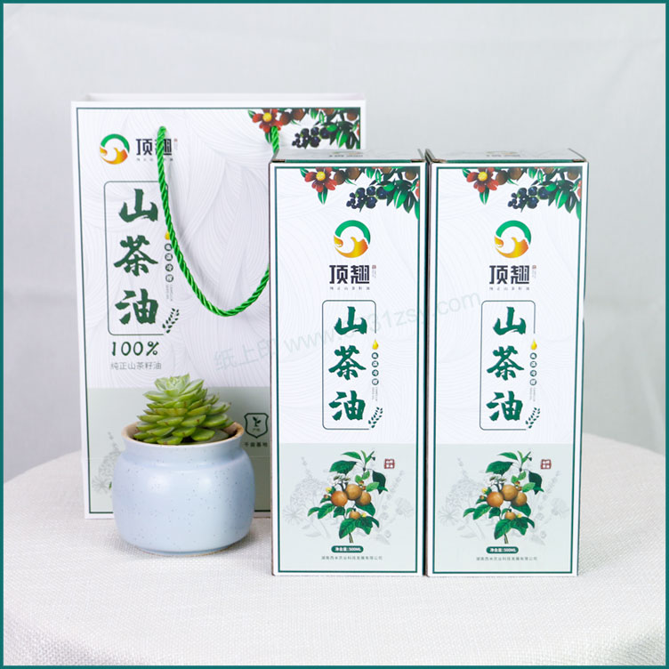 湖南西米发展集团有限公司是一家多元化、综合型、公益性的新型企业集团。集团秉持“多元化+专业化”的运作理念,依托产业与资本双轮驱动,聚焦传统产业的创新升级和战略性新兴产业的探索实践,致力成为更具产业规模、品牌影响力和社会责任感的新型企业集团,为合作伙伴提供最优服务、创造最大价值的同时,不断完善产业布局、提高资源整合效率,服务国民经济,推动社会进步。此次与长沙包装盒厂家毅丰达成合作协议,把公司两款新上市的茶油产品交由长沙毅丰负责生产茶油外包装盒,设计上结合产品特点清新自然为主体,突出山茶油低温冷榨的特点,山茶油包装盒材质选用白卡纸裱瓦楞制作,一盒容量为500ML,两个卡盒配一个手提袋,整体更显高档也便于提携.