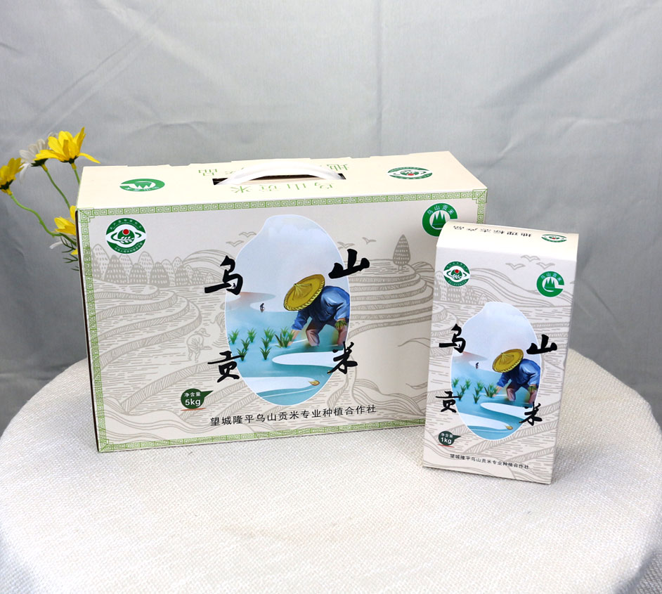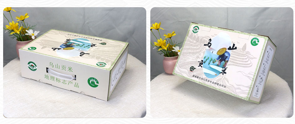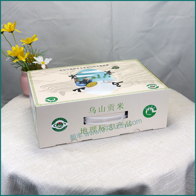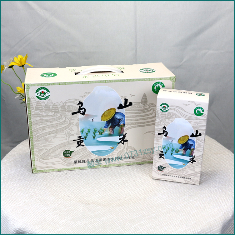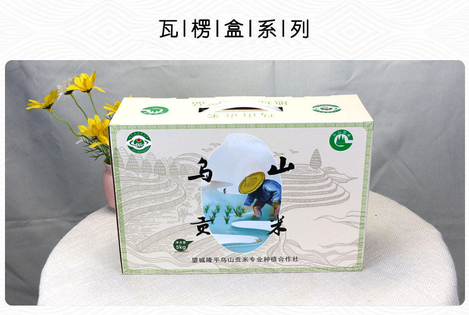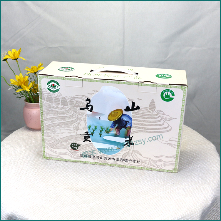 【使用范围】:乌山贡米包装盒材质为白卡纸裱瓦楞,是一款常见的提手盒,广泛适用于农产品包装,水果包装礼盒,土特产包装盒,腊鱼腊肉包装盒等