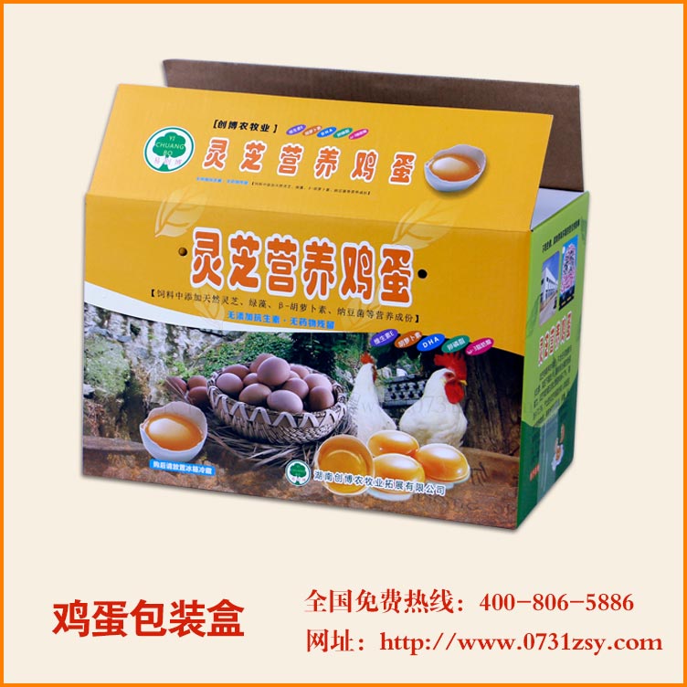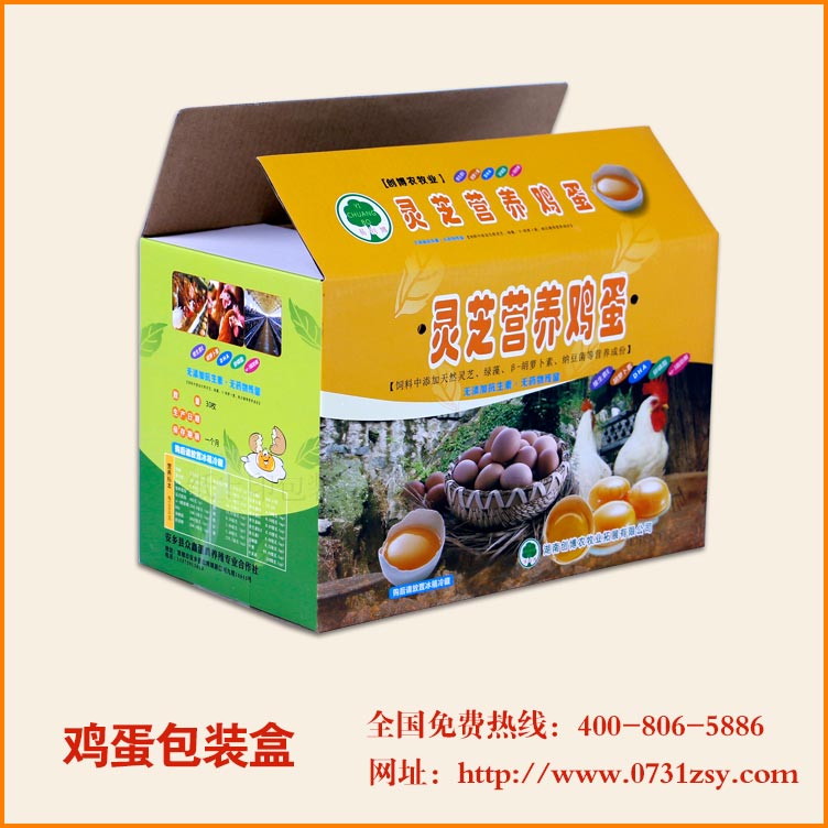 【使用范围】:此款瓦楞纸包装盒为农产品鸡蛋包装礼盒,盒子采用250g白板纸裱瓦楞纸成型,厚度为3层瓦楞纸。由长沙毅丰包装设计印刷有限公司出品。