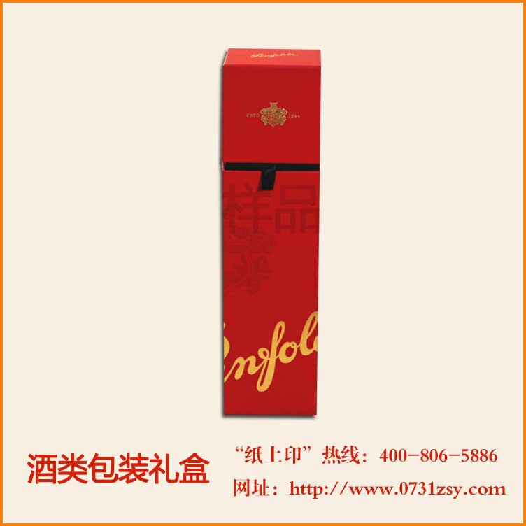 长沙毅丰包装礼盒厂专业印刷制作酒类包装礼盒,此款酒类包装礼盒封面采用红色作为背景色,并使用艺术字体来突出品牌和产品,同时酒类包装礼盒采用高档材质和工艺来提升产品档次,达到推广产品和提升价值的目的,并促进产品的销售,长沙酒类包装礼盒毅丰包装厂是一家集酒类包装礼盒设计,打样,印刷制作为一体的一站式服务.