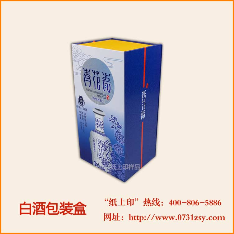 长沙白酒包装纸盒订做厂家毅丰22年专业制作酒类包装礼盒,“青花瓷”艺术历史悠久,已经成为中国传统文化的标志之一,青花瓷作为传统陶瓷器物文化的精髓,此次毅丰包装运用现代产品设计使其继续发挥其文化内涵.此款包装盒材质:特种纸裱灰板,广泛适用于产品包装礼盒,化妆品包装礼盒,茶叶包装礼盒,礼品包装盒等,长沙白酒包装盒印刷厂,免费设计,热线:177-6366-7656