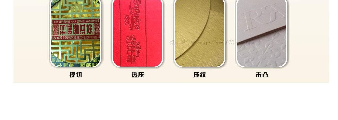 击凸工艺是印刷后工艺中常用的技术之一,从纸张背面施加压力让表面膨起来的工艺俗称“击凸”,目的在于增加整体结构上的层次。 压凹工艺是将凹版和凸版相结合,并把纸夹入,后施加压力使纸凹陷,从而表现文字和图案,具有明显的立体感。