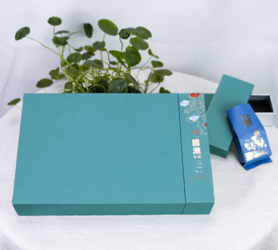 国潮在过去十年里搜索热度上涨了528%,国潮文化正在迅速崛起,现在的有很多包装设计都运用到了中国风元素,长沙包装厂毅丰设计的这款包装礼盒简单美观也受到了用户的喜爱,盒型为抽屉盒,材质选用特种纸裱灰板,内衬也是中国风设计的纸托,此款包装礼盒定制同样也适用于茶叶包装盒,茶油包装盒,化妆品包装等