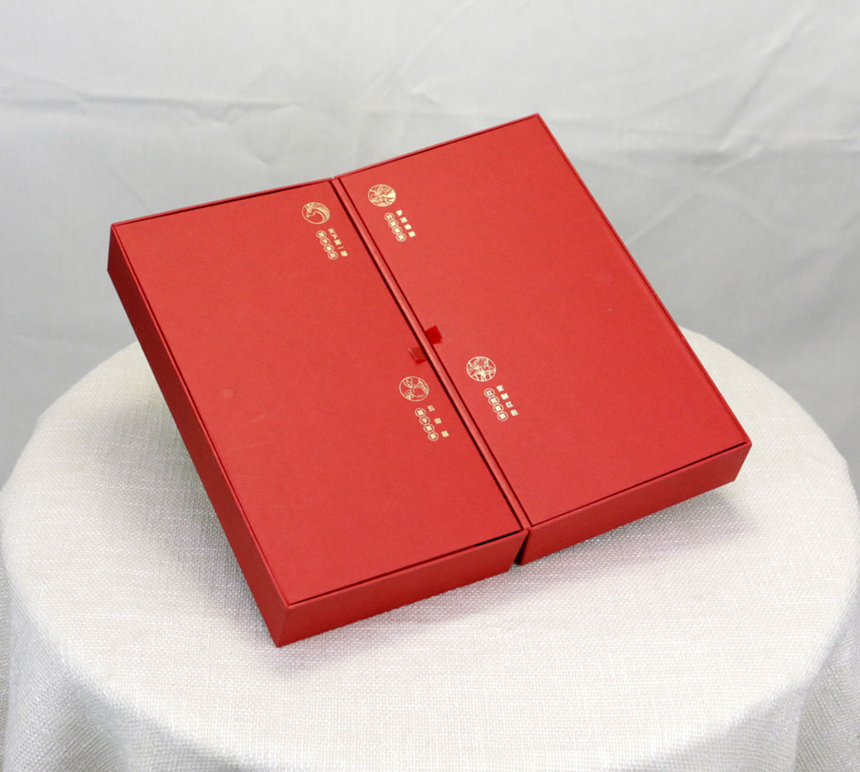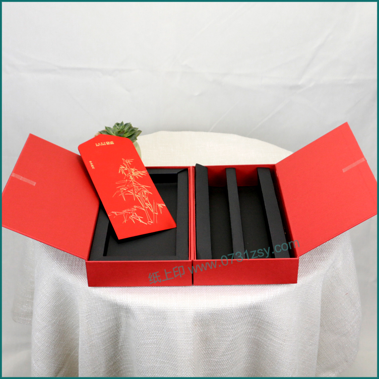 老话说的好过了中秋就是年,新春礼盒包装定做安排好了没?长沙包装盒定做工厂毅丰包装提前安排好这批新春礼盒上机生产,此款盒型为双开盒,内盒的摆放为红包和对联的套装,是一款及美观的中式礼盒。礼品盒选用传统中国红的喜庆颜色,外盒做高档浮雕/烫金工艺是一款符合传统节日的礼品包装盒。