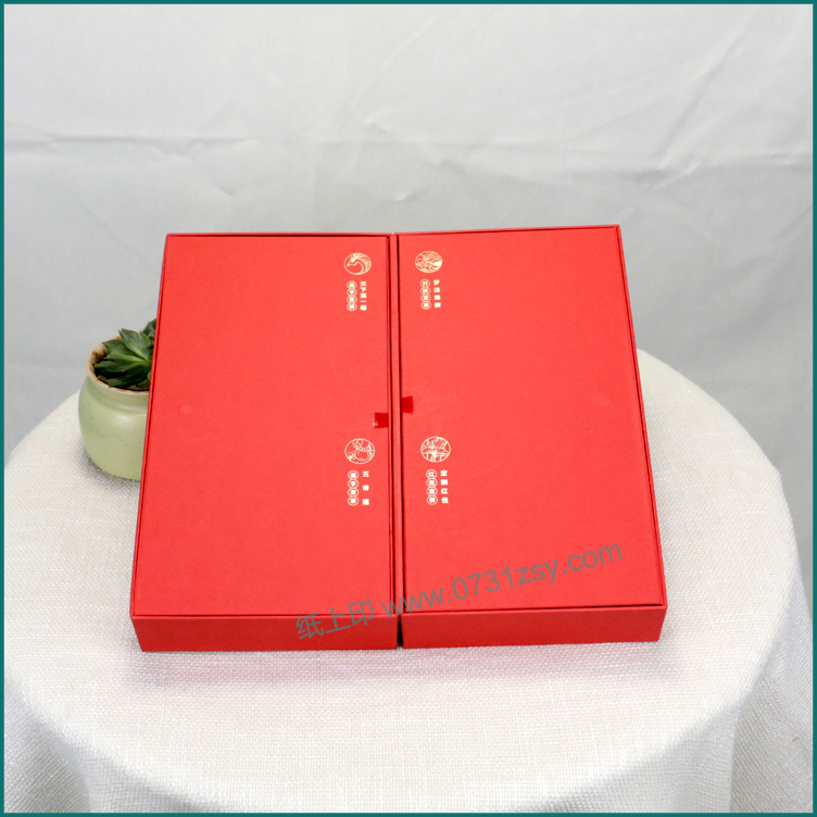 【使用范围】:长沙新春礼盒包装定做厂家免费设计/打样,此款盒型为双开盒,材质特种纸裱灰板,其材质广泛适用于礼盒包装,茶叶包装盒,保健品包装,农产品包装等