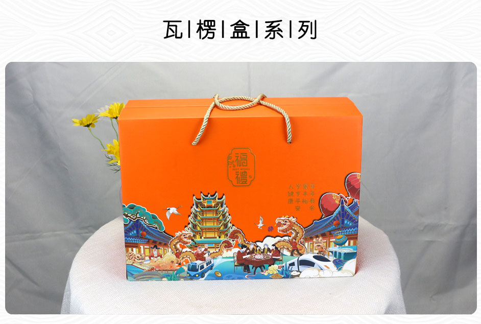 【使用范围】:湖南礼盒包装定做厂家500起做,此款是一款手提绳提手盒,白卡纸裱三层牛皮E瓦楞,表面做整版烫金,材质广泛适用于水果包装礼盒,预制菜包装礼盒,大米包装盒,农产品包装等