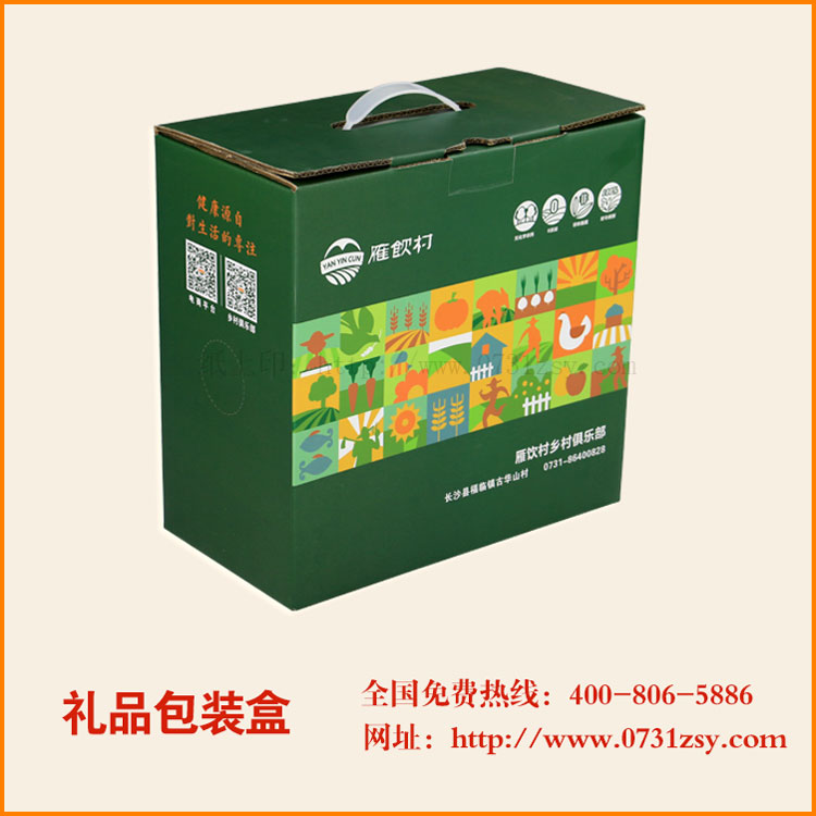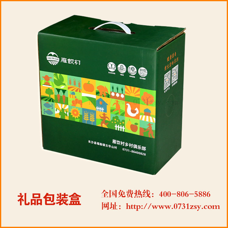 【使用范围】:此款礼品包装盒主要适用于:农产品包装礼盒、特产包装礼盒、水果包装礼盒、礼品包装礼盒等.长沙包装印刷厂专业订制,交货快!
