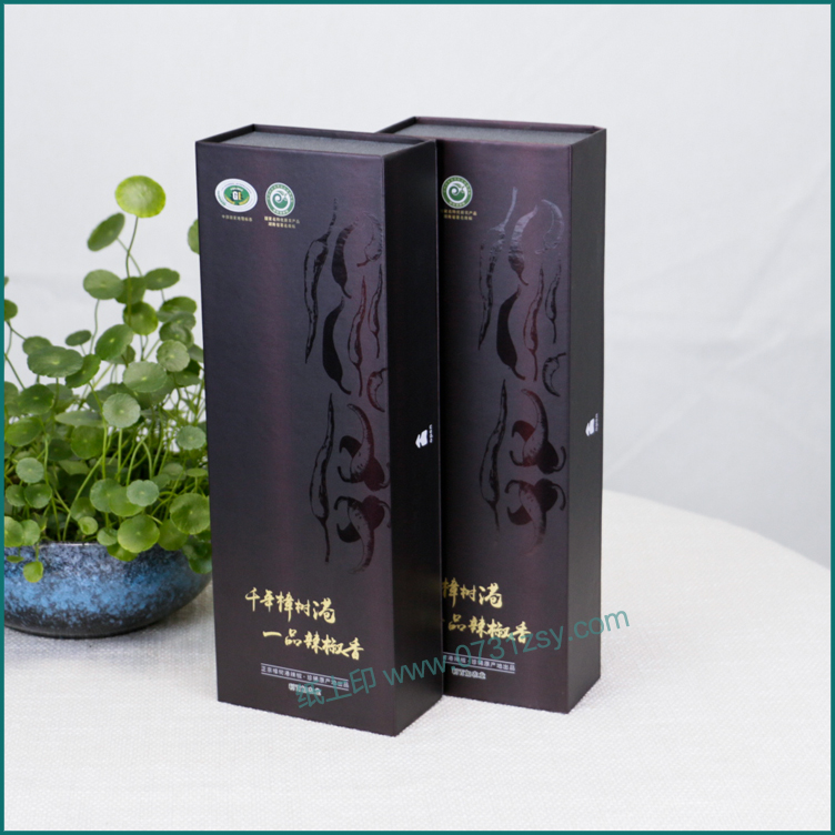 樟树港辣椒包装盒一般以手提瓦楞盒较常见,您见过这样的樟树港精装礼盒吗?两个礼盒配手提袋方便提携更显高档,长沙包装盒厂毅丰包装选用特种纸裱灰板的材质,外盒做UV工艺,让包装盒更出彩!此款辣椒彩盒包装材质也适用于茶叶包装盒,大米包装盒,农产品包装盒,食品包装盒等