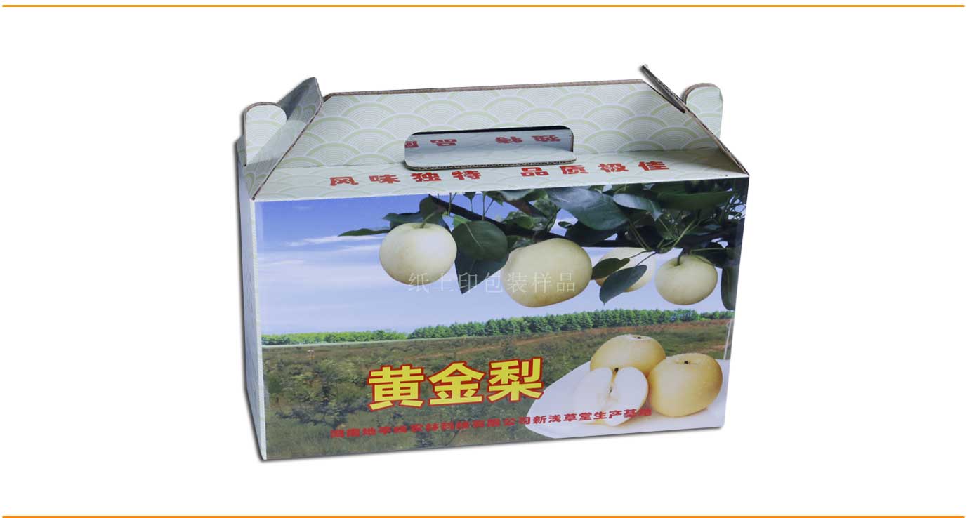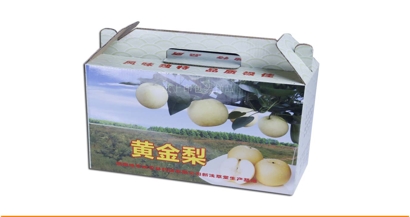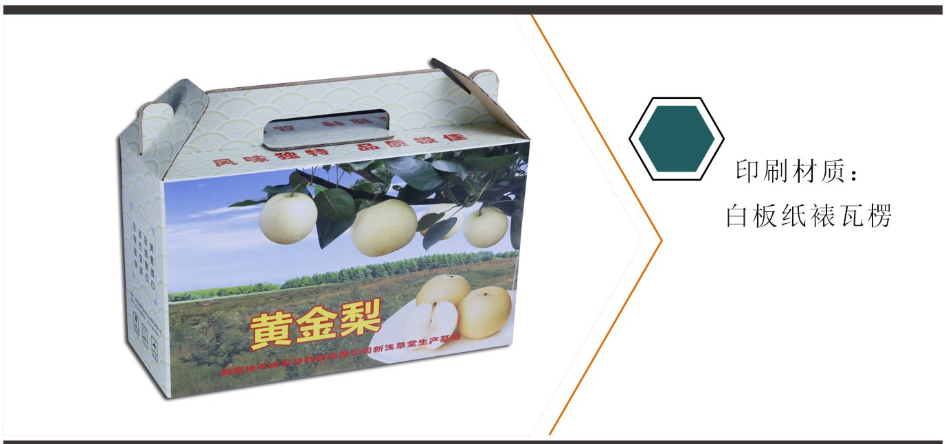 长沙产品外包装公司毅丰包装厂设计制作的黄金梨包装盒已出大货,客户收到货后,对水果包装盒的数量和品质感到很满意,因而愿与长沙毅丰包装盒厂达成长期的合作协议,绿色天然食品黄金梨包装盒是采用白板纸裱瓦楞纸制作而成,3层瓦楞纸承重力强,盒型为自带手提盒,便于客户提携又能达到节约成本的目的。