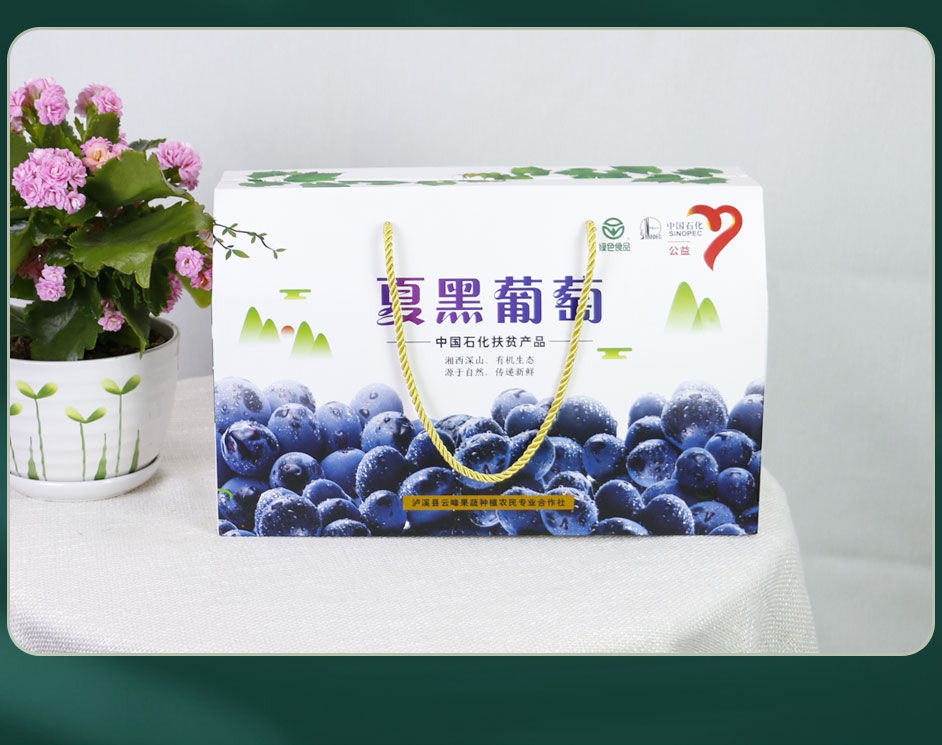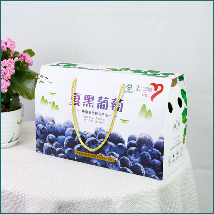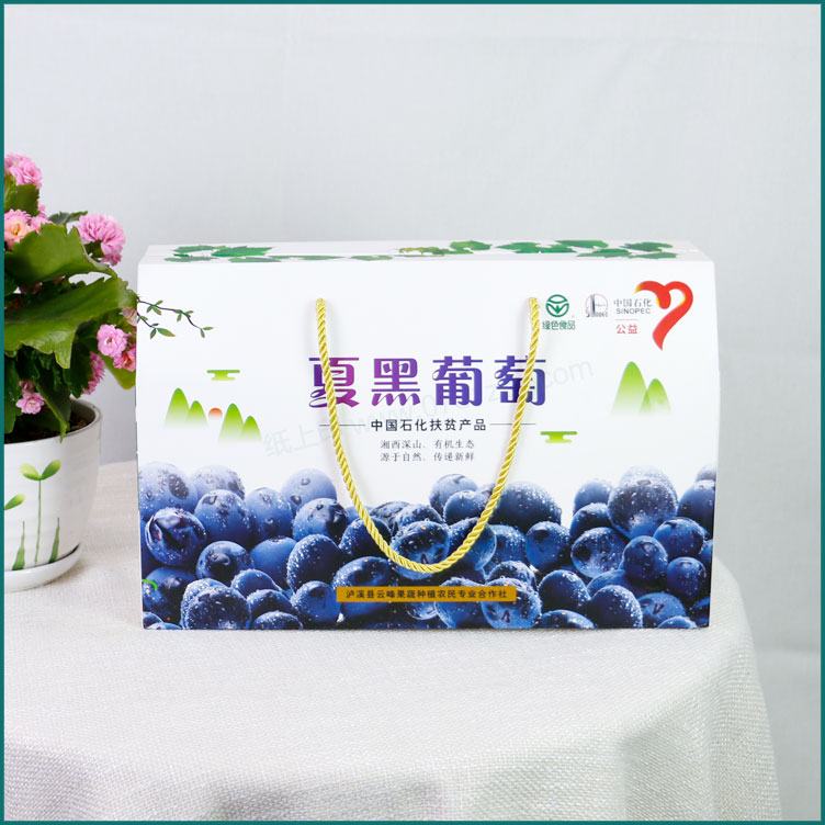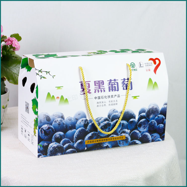 夏黑葡萄马上上市了,长沙包装盒厂毅丰也赶在水果上市前按约定时间交货,此款水果礼盒为斜面双插扣底盒,常用于各类水果包装盒印刷,猕猴桃包装盒制作,农产品包装盒,大米、腊肉等产品包装盒,材质选用白卡纸裱三层瓦楞制作,能承重5-8斤左右。