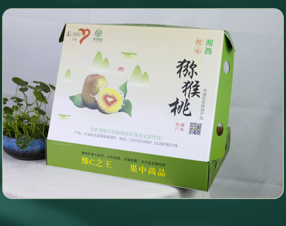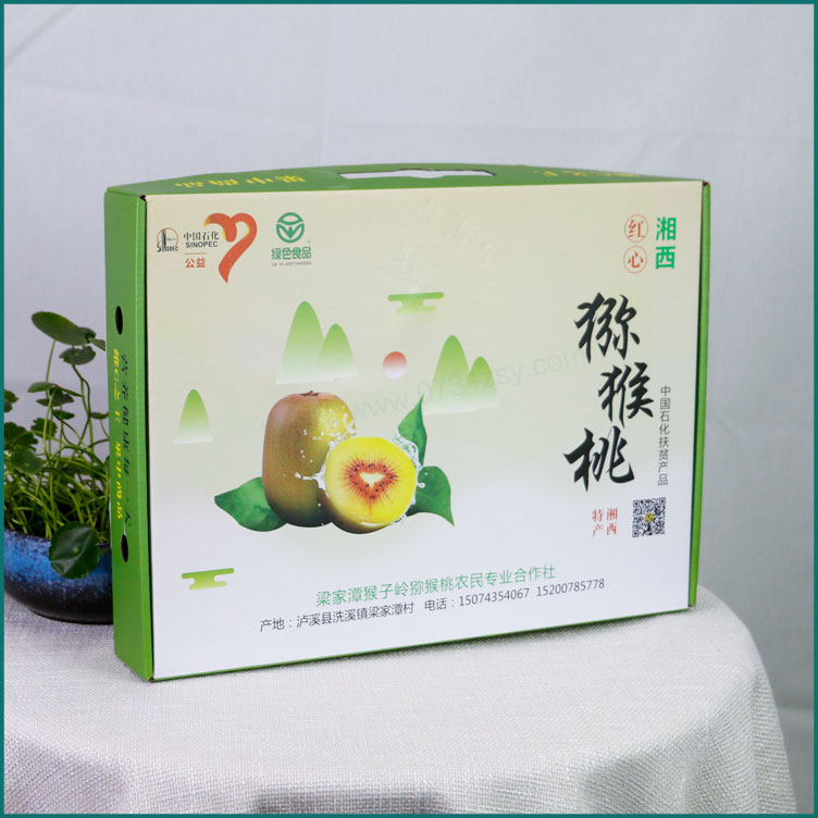 【使用范围】:红心猕猴桃包装盒材质为三层瓦楞纸,广泛适用于水果包装盒,黄桃包装,葡萄包装盒,奈李包装盒等各种水果包装,水果包装盒定做厂家,免费设计,1~2天定稿,送货上门
