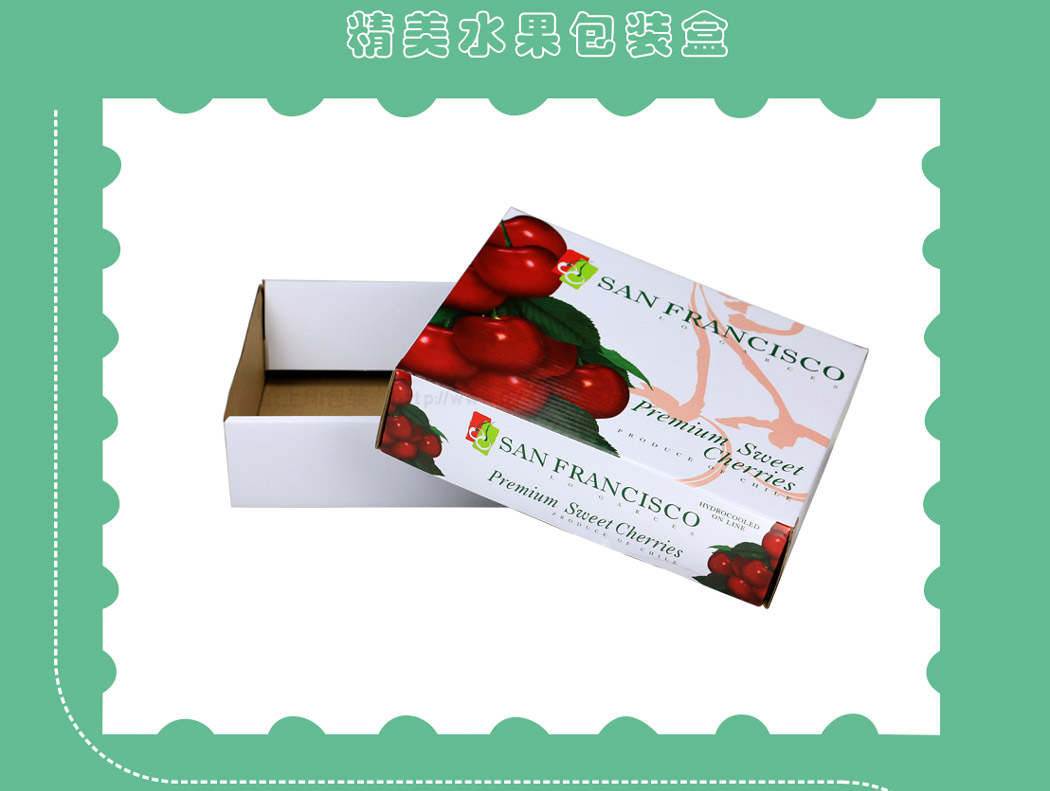 【使用范围】:此款瓦楞纸包装盒广泛使用于:樱桃包装盒、黄桃包装盒、奈李包装盒、葡萄包装盒等水果包装礼盒。长沙毅丰印刷厂专业订制,交货快!17763667656