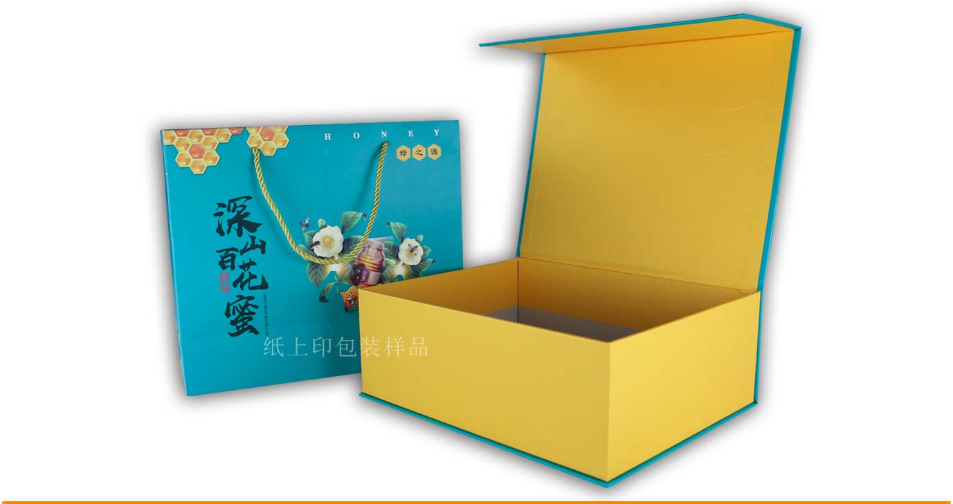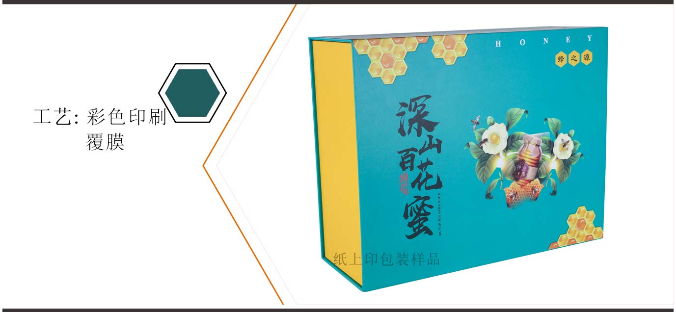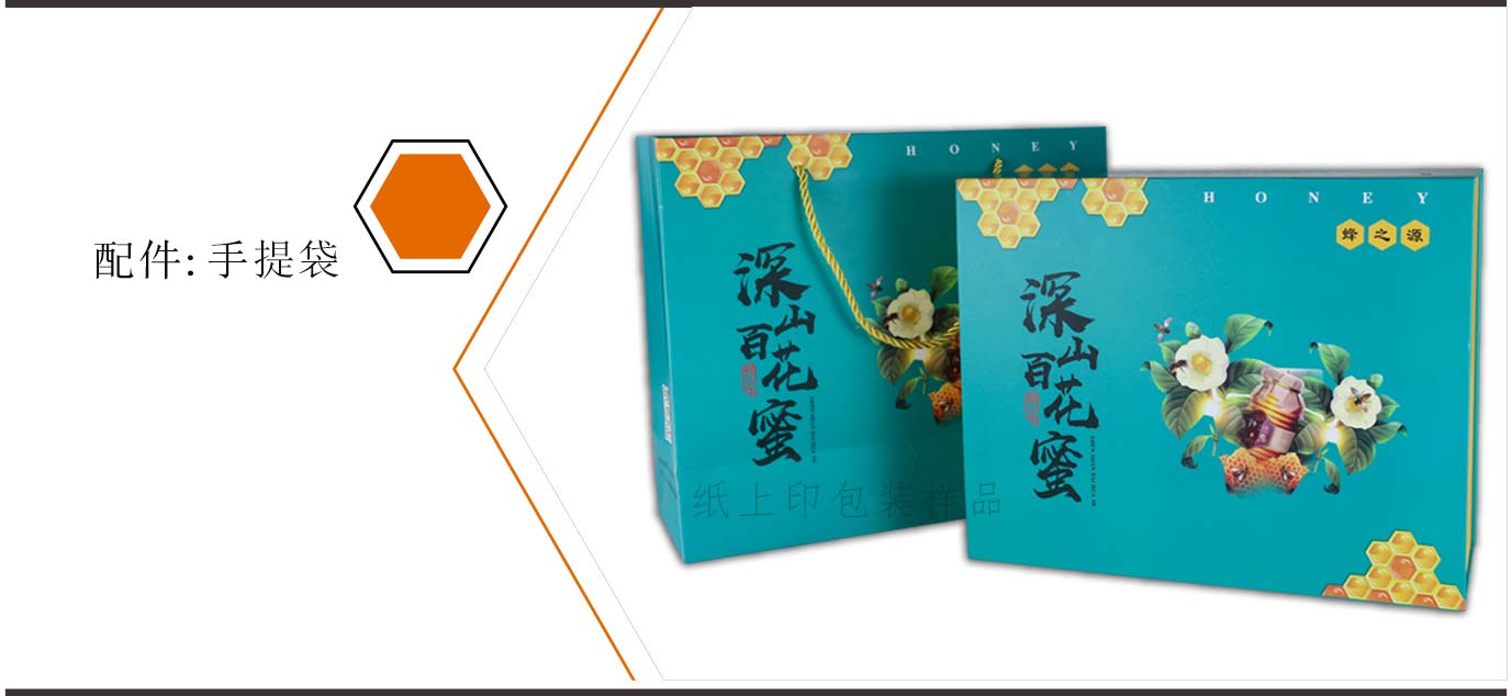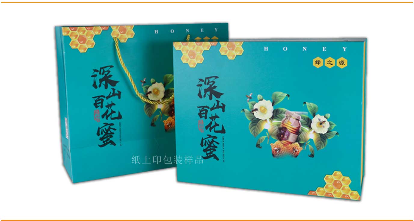蜂之源深山百花蜜精装盒已出大货,此款包装盒是由长沙制作包装盒厂家毅丰精心设计制作而成,设计上由绿色为主打色,绿与黄两个颜色的碰撞使这款包装盒忧外的吸引目光,厚实的材质,精心的制作,更能助力产品快速销售!