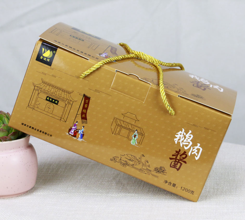 湖南万家鹅业发展有限公司成立于2005年06月15日,注册地位于新田县工业园南园(支二路与支四路交叉口西北角),经营范围包括禽类养殖、禽类养殖服务;禽类回收、加工、销售;肉制品、酱卤肉制品、水产品、风味鱼制品等加工、销售;此款鹅肉酱包装盒印刷出自长沙食品盒包装盒厂家毅丰包装,选用白卡纸对裱的材质,白卡纸对裱更有质感挺度也更好,外盒覆亮膜工艺,也适用于:食品包装盒,蜂蜜包装盒,茶油包装礼盒等领域