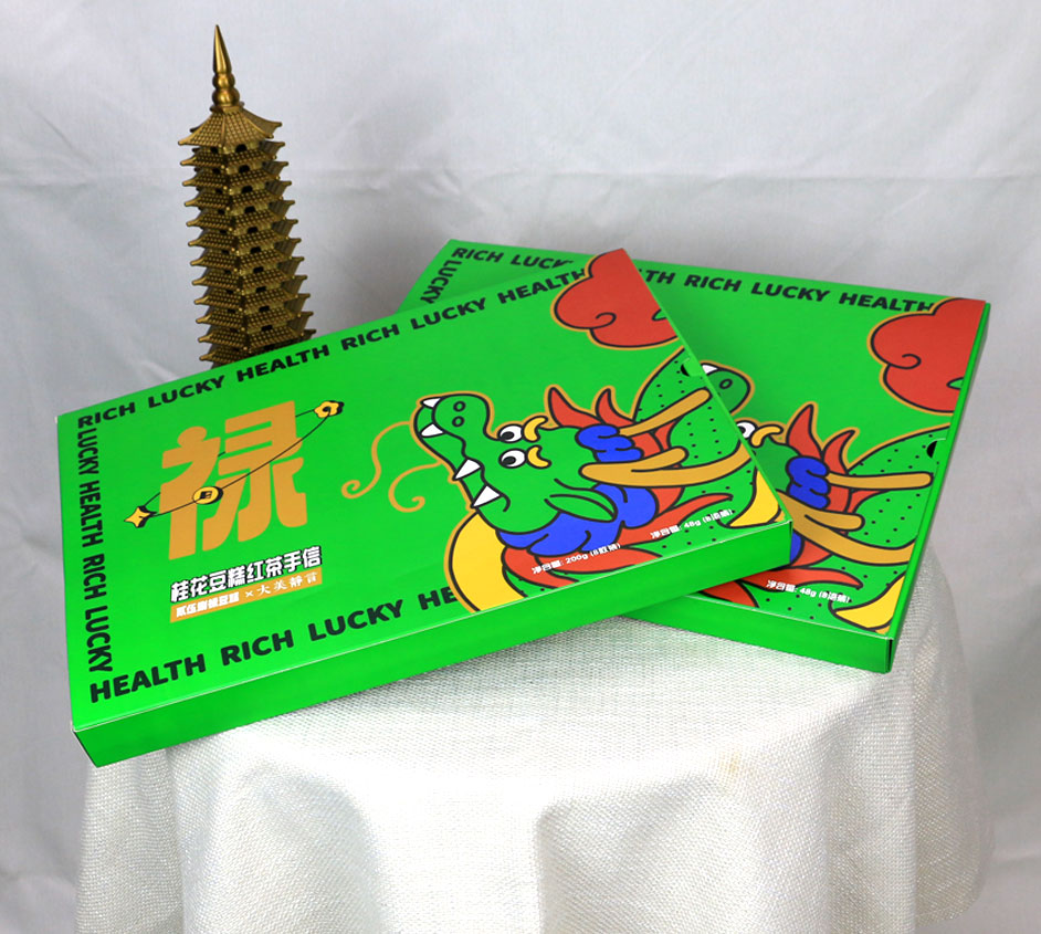 【使用范围】:该款绿豆糕食品包装盒材质为白卡纸,广泛适用于农产品包装盒订制,食品包装盒印刷,特产包装礼盒制作等礼品盒包装印刷。