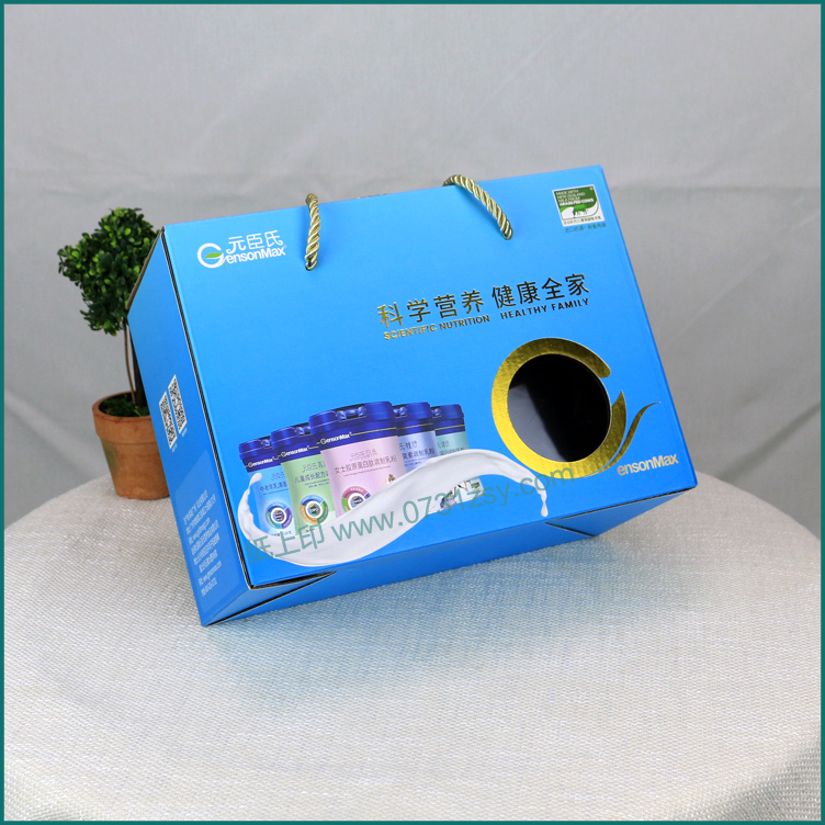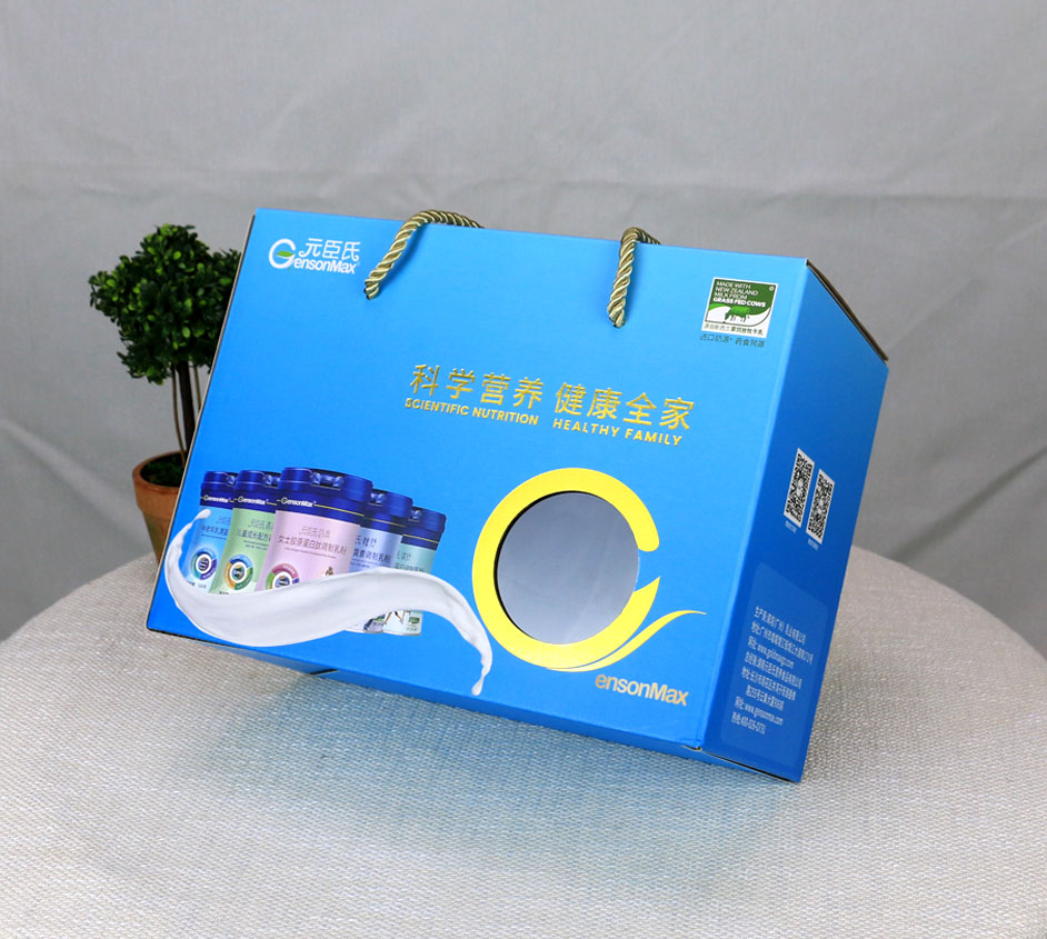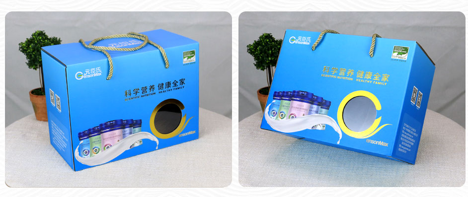 此款罐装奶粉外包装材质精选250克白卡裱三层E瓦制作,外盒做烫金工艺,并做了一个开窗贴膜片的效果,通过外盒可以更直观的了解到里面的产品,增加产品的视觉效果,从而达到增加销量的目的,此款包装广泛适用于食品包装,特产包装,保健品包装盒,茶油包装礼盒,礼品包装盒等,长沙包装厂毅丰提供免费设计,1~2天定稿,热线:177-6366-7656