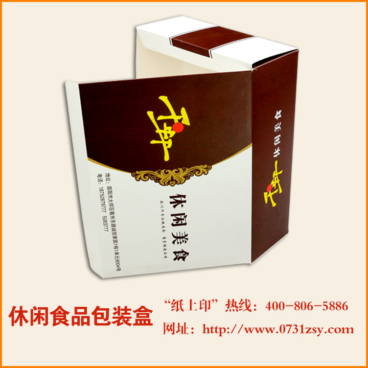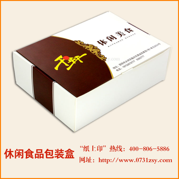 【使用范围】:此款休闲食品包装盒主要使用300g白卡纸印刷,广泛使用于食品包装盒、产品包装盒、特产包装盒等礼品包装卡盒.长沙毅丰包装印刷厂专业定制,交货快!热线:177-6366-7656