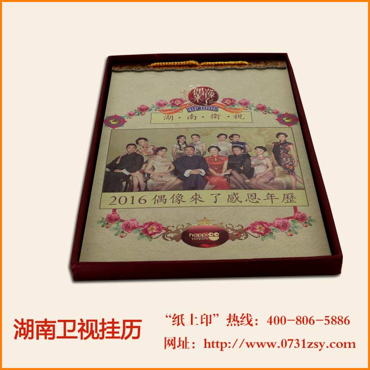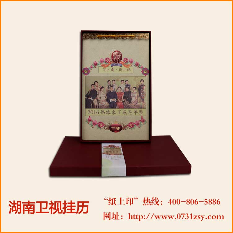 【使用范围】:2016年偶像来了感恩年历适盒送客户,送朋友,送亲戚,送领导,广泛适用公司及企业等事业单位,长沙台历挂历印刷厂家,免费设计,1至2天定稿,热线:177-6366-7656