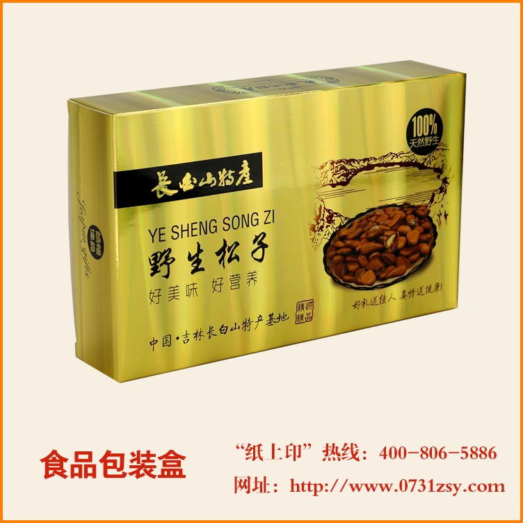 【使用范围】:此款金银卡纸包装盒主要应用于:食品包装礼盒,特产包装礼盒,保健品包装礼盒等领域。湖南土特产礼盒包装厂万彩网,免费打样,500起印,免费热线:4008065886