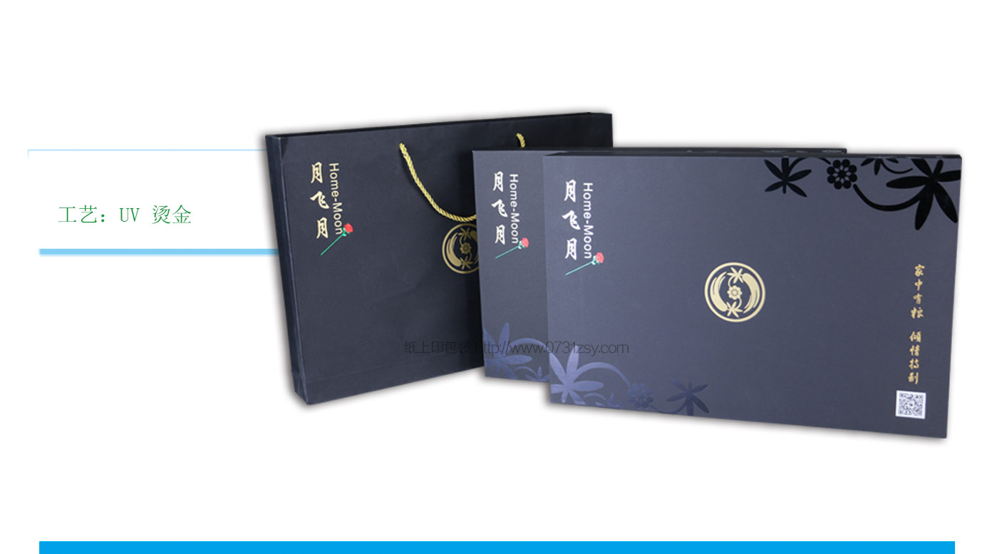 长沙国合湘汕实业有限公司成立于2001年2月,注册资金1275.7万元,公司主要从事纺织品、粮油的进出口贸易业务。“家中有粮”品牌由长沙国合湘汕实业有限公司2016年1月注册成功,公司于2014年在柬埔寨投资200万美元成立全资子公司,主要从事柬埔寨茉莉香米的生产与加工、进口等相关工作。该公司与包装厂家长沙毅丰合作多年,今年特推出“月飞月”中秋礼盒,此款月饼包装盒为天地盖盒,外盒材质选用黑卡纸裱灰板,简单的设计,UV和烫金的工艺更能显出礼盒的精美。高颜值包装盒助力产品高销量!月饼礼盒包装定制500起印,长沙市区免费送货上门,24小时咨询热线:4008065886。