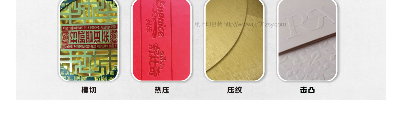 - 压印的各种凸状图文和花纹显示出深浅不同的纹样,具有明显的浮雕感,增加了印刷品的立体感和艺术感染力。