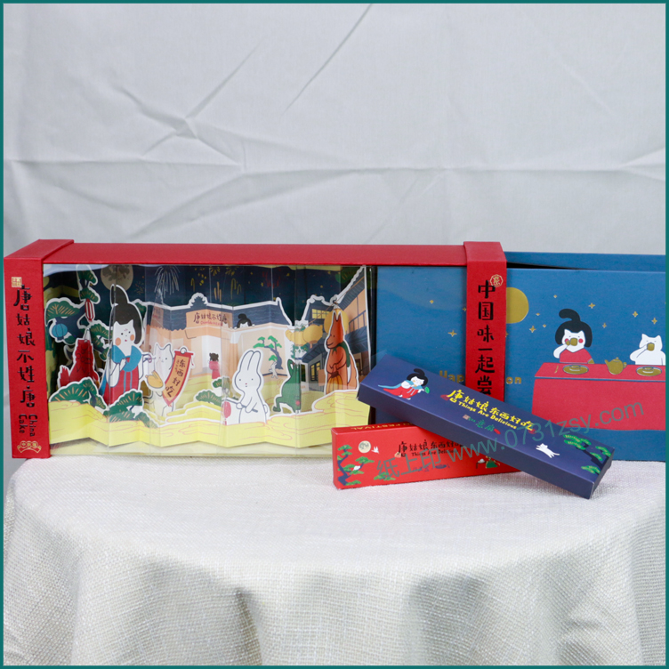 长沙包装印刷厂家毅丰包装在通过不断的研磨创新中生产出此款月饼礼品包装盒,包装礼盒其特征在于:包装盒设有侧面拉口的立体卡,相较普通的包装盒呈现的方式更饱满,这是一款创意月饼礼盒包装,配有底座亮灯卡盒,拉开便是是满满的创意和惊喜!此款礼品盒为立体卡抽屉盒,广泛适用于化妆品包装盒,月饼包装礼盒,礼品盒包装盒定做等