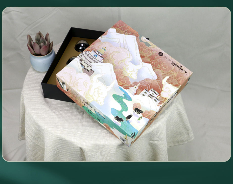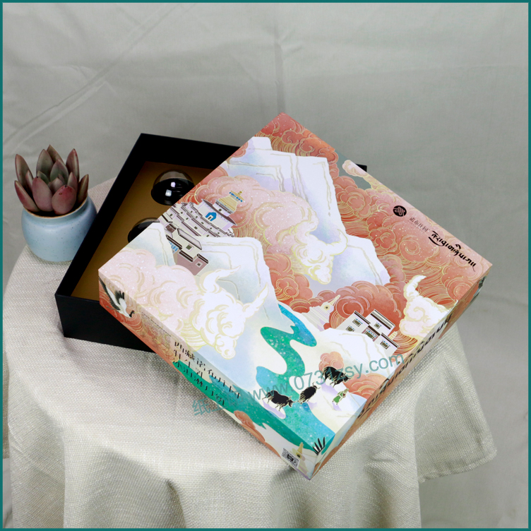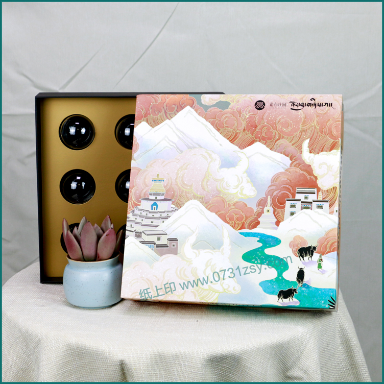 【使用范围】:西藏诺布庄园冰淇淋月饼包装盒定做为天地盖的盒型,广泛适用于:茶叶包装礼盒,保健品包装盒,化妆品礼盒,产品包装礼盒等,长沙包装盒厂毅丰,免费打样,设备齐全
