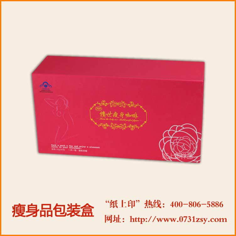 【使用范围】:瘦身咖啡包装盒盒型为书型盒,广泛适用于医疗保健品包装盒,茶叶包装盒,茶油包装盒,零食包装盒,大米包装盒等,长沙保健品包装印刷厂专版定制,热线:177-6366-7656