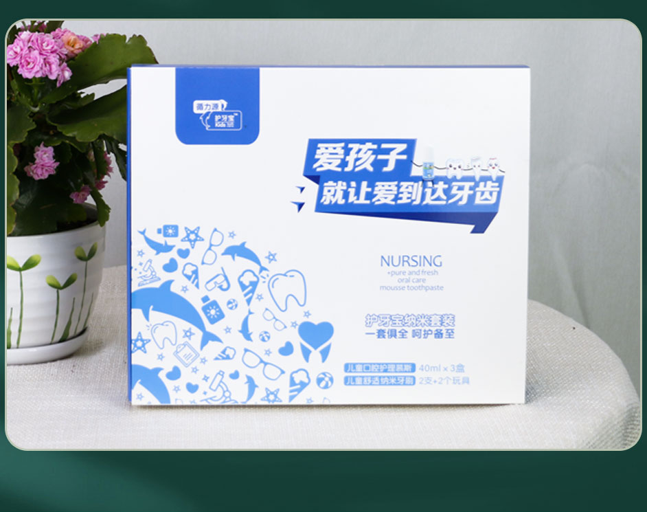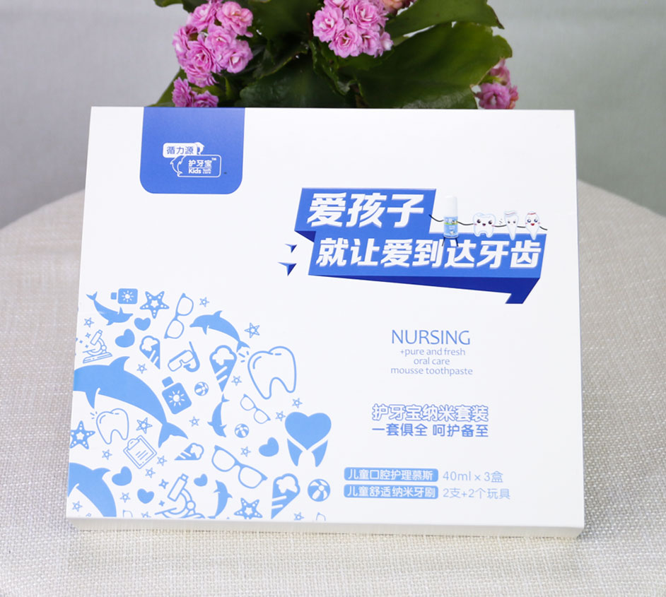 护牙宝纳米套盒产品包装印刷材质为400克白卡纸,盒型为抽屉盒,出自长沙包装盒印刷厂家毅丰包装,其包装材质广泛适用于食品包装卡盒,茶油包装盒,大米包装盒等,产品包装印刷厂家提供设计打样,1~2天定稿,热线:400-806-5886