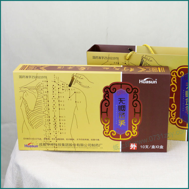 【使用范围】:艾条包装盒盒型为较常见的书型盒,广泛适用于医疗保健品包装盒,茶叶包装盒,茶油包装盒,化妆品包装盒等,长沙保健品包装厂毅丰包装提供设计制作一站式服务,热线:177-6366-7656