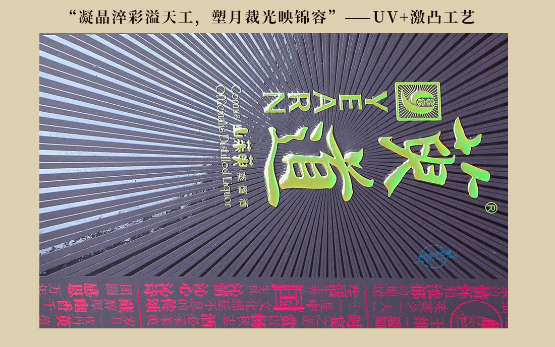 采用逆向上光工艺能够使同一印品上同时存在镜面的高亮光效果和哑光或麻面的非高亮光效果,在亮度上形成更强的反差,使上光达到更好的效果 同时,因为非高亮光部位用的是胶印方式印刷,所以套印非常准确,也保证了高亮光部位图文的印刷精度。