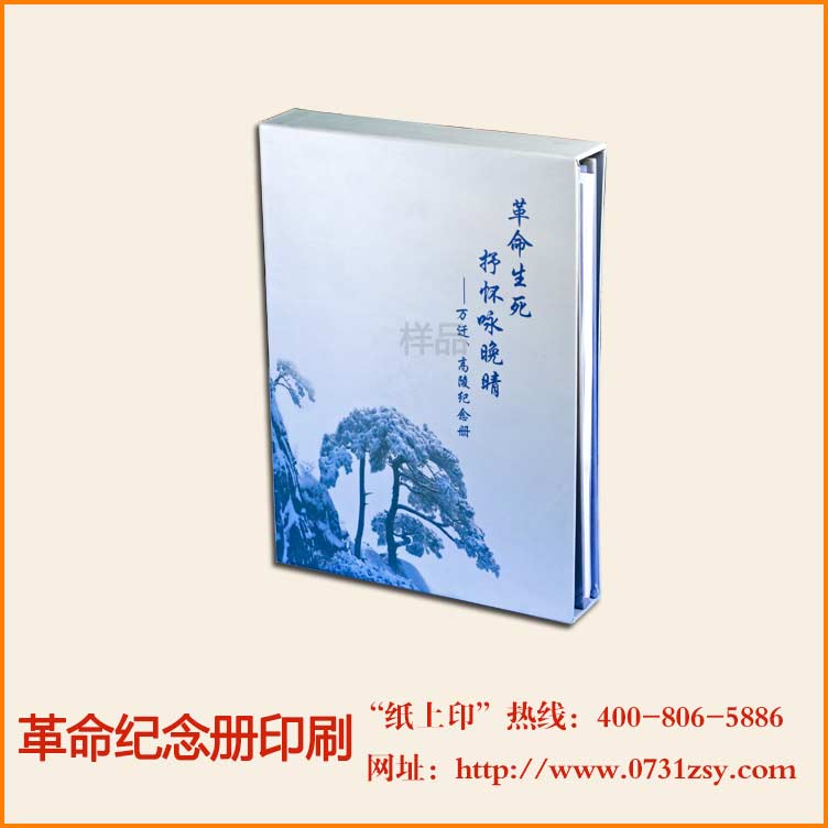 长沙印刷厂家毅丰印刷厂专业为万迁,高陵纪念册设计制作的,此款纪念册是为了纪念“革命忘生死,抒怀咏晚晴”的革命精神,此款纪念册采用高档材质,精装书包装定制的材质,封面:铜版纸裱灰板,内页:铜版纸印刷。长沙革命高陵纪念册印刷毅丰刷厂是一家专注于精装书包装盒印刷,精装书印刷,纪念册族谱印刷等.